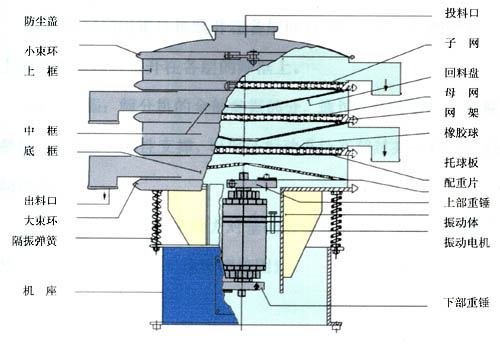 XZS系列旋振篩是在S49系列旋振篩的基礎(chǔ)上,吸收國內(nèi)外先進(jìn)技術(shù),并采用先進(jìn)的加工工藝而設(shè)計的高精度篩分過濾機械,它是以立式振動電機或?qū)S眉ふ衿鳛檎駝釉矗⑹秸駝与姍C(或激振器)上、下端裝有偏心重錘,可產(chǎn)生水平、垂直、傾斜的三次元運動,通過調(diào)節(jié)上、下偏心重錘的相位角,改變物料在篩面上的運動軌跡以達(dá)到篩分各種物料的目的。該產(chǎn)品適用于任何粉、粒、液的篩分和過濾的行業(yè)。廣泛用于化工、醫(yī)藥粉、液、涂料、顏料、化妝品、油脂、樹脂、陶瓷漿、粘土泥漿、生石灰、耐火材料粉末,冶金粉末、電磁粉末、研磨粉、果汁、飲料、食糖、食鹽、味精、調(diào)料、奶粉、淀粉、面粉、米粉、碳粉、石墨粉、錳粉、碳酸鋰、助溶劑、滅火劑以及環(huán)保行業(yè)的污水、廢水處理的工藝過程中的篩分、過濾。